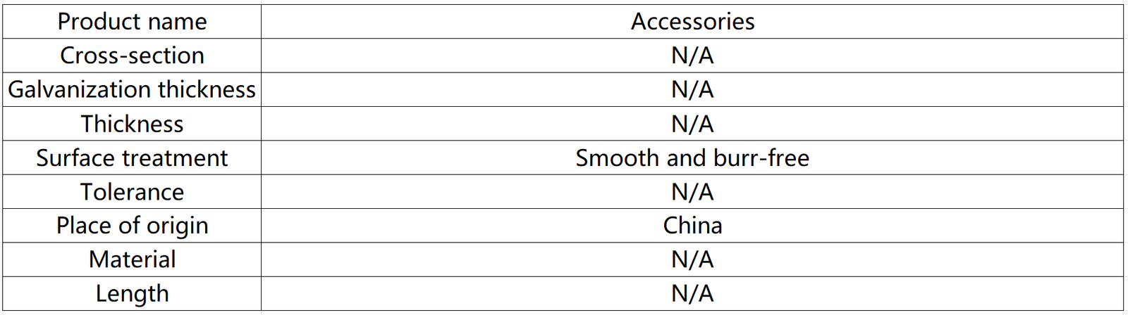 Accessories include various matching parts for structural connection and assembly, such as connectors, fasteners and fixings. They are durable and easy to install.