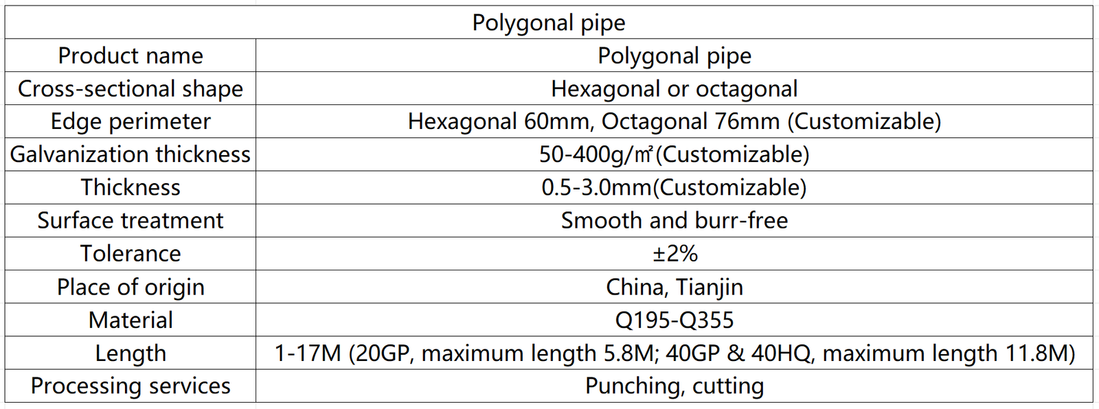 Polygonal pipe is a multi-sided profile tube with high structural strength and good stability. It is widely used in greenhouse frames, construction and mechanical support.